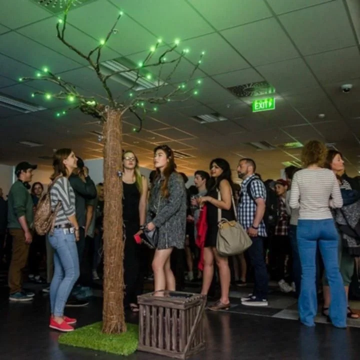 The tree structure was carefully designed and fabricated using lightweight materials to support a seamless 360-degree experience. The framework integrated responsive lighting strips, ambient sound components, and translucent coloured panels. A custom-built sound sensor system enabled real-time feedback and environmental monitoring.